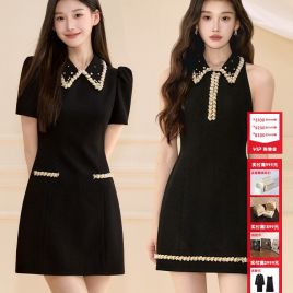oshea 星耀黑 法式千金风连衣裙女2025新款夏季收腰显瘦重工a字裙
