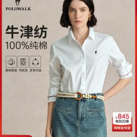 POLOWALK纯棉白色衬衫女上衣秋冬新款修身长袖正装白衬衣内搭休闲