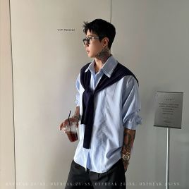 OXFREAK 「可拆卸披肩」蓝条纹长袖衬衫男设计感小众宽松廓形衬衣