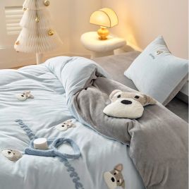 卡通冬季小清新牛奶绒四件套可爱小狗毛巾绣被套加厚1.8m床上用品