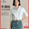 POLOWALK纯棉白色衬衫女上衣秋冬新款修身长袖正装白衬衣内搭休闲 S