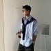 OXFREAK 「可拆卸披肩」蓝条纹长袖衬衫男设计感小众宽松廓形衬衣