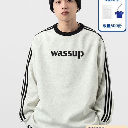 潮牌三条杠字母长袖卫衣男女秋冬青少年宽松情侣打底衫男 M