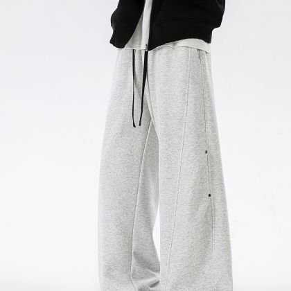 City Hipster美式卫裤男秋冬季宽松潮牌运动直筒裤休闲加绒长裤子 黑色 S