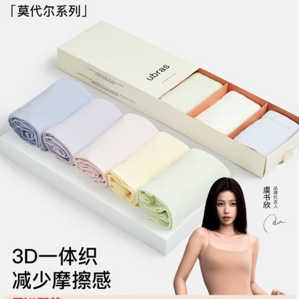 ubras莫代尔内裤女士一体织纯棉抗菌裆中高腰透气亲肤薄款三角裤 黑色 S