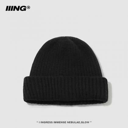 巨显脸小秋冬保暖加厚针织帽女大头围套头素颜毛线冷帽 黑色 M