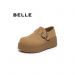 百丽(Belle)千层可颂质感勃肯鞋女2025秋新款商场厚底增高休闲鞋E4S1DCM5预售 棕色 36 36